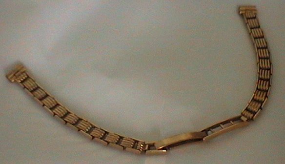 An attractive 9 carat gold watch bracelet. Maximum length 6.5 inches (63mm) and weighing 10 grammes. Would fit lug measuring 7mm and above. A nice addition to any ladies gold watch.