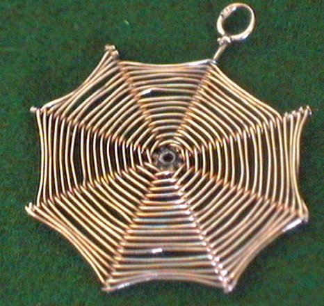 A 9 carat gold charm in the shape of a spiders web. It measures 27mm diameter and weighs nearly 2 grammes. In good condition.