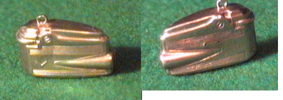 Nine carat gold charm in the shape of a cigarette lighter. English hallmark, weights 1.5 grammes and measures 0.75 ins in length. Good detail, one very small crease on one side, otherwise in good condition.