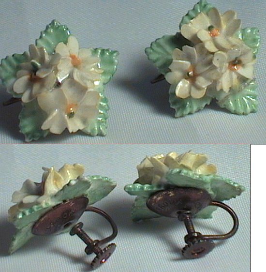 A pair of Coalbrook vintage floral earrings in good condition. Measuring 0.75 inches diameter at their widest point, they are fitted with screw fasteners. One excellent small repair has been made to one of the earrings.