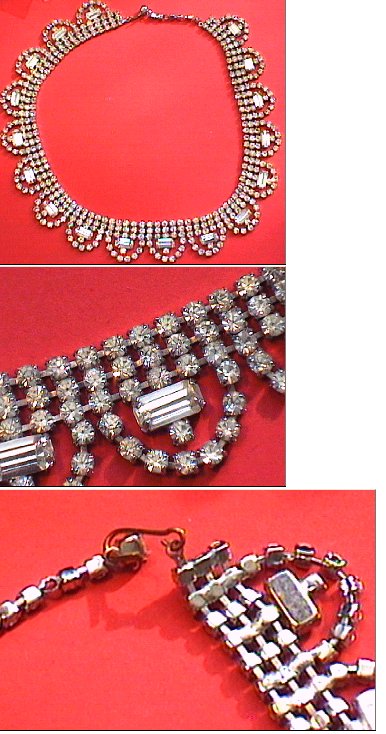 This glass necklace is in excellent condition. Every glass stone is there in a secure metal setting. Total length including the fastening is 16.5 inches (435mm). It is a lovely item that has been well cared for.
