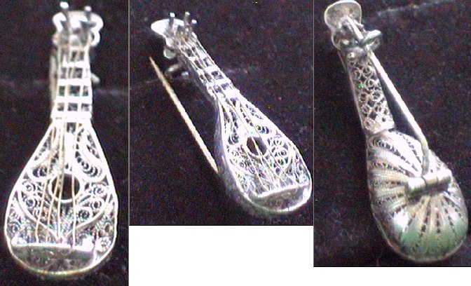 Old Silver Mandolin Brooch