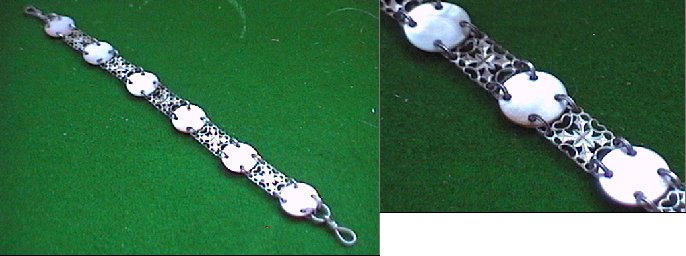 A delicate silver and mother of pearl bracelet for a slim wrist. It measures 182mm in length and is in good condition.